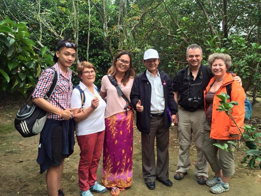There are tremendous differences names of plants and flowers. I have no idea all those, what I know is papaya, guava, mango, coconut tree so so…………. and some plants is good medicine for human treatment. He invited us for free tea inside the big house. We had five members in our tour group two Cambodian and three French people. We made fantastic conversation, sharing cultures and history.